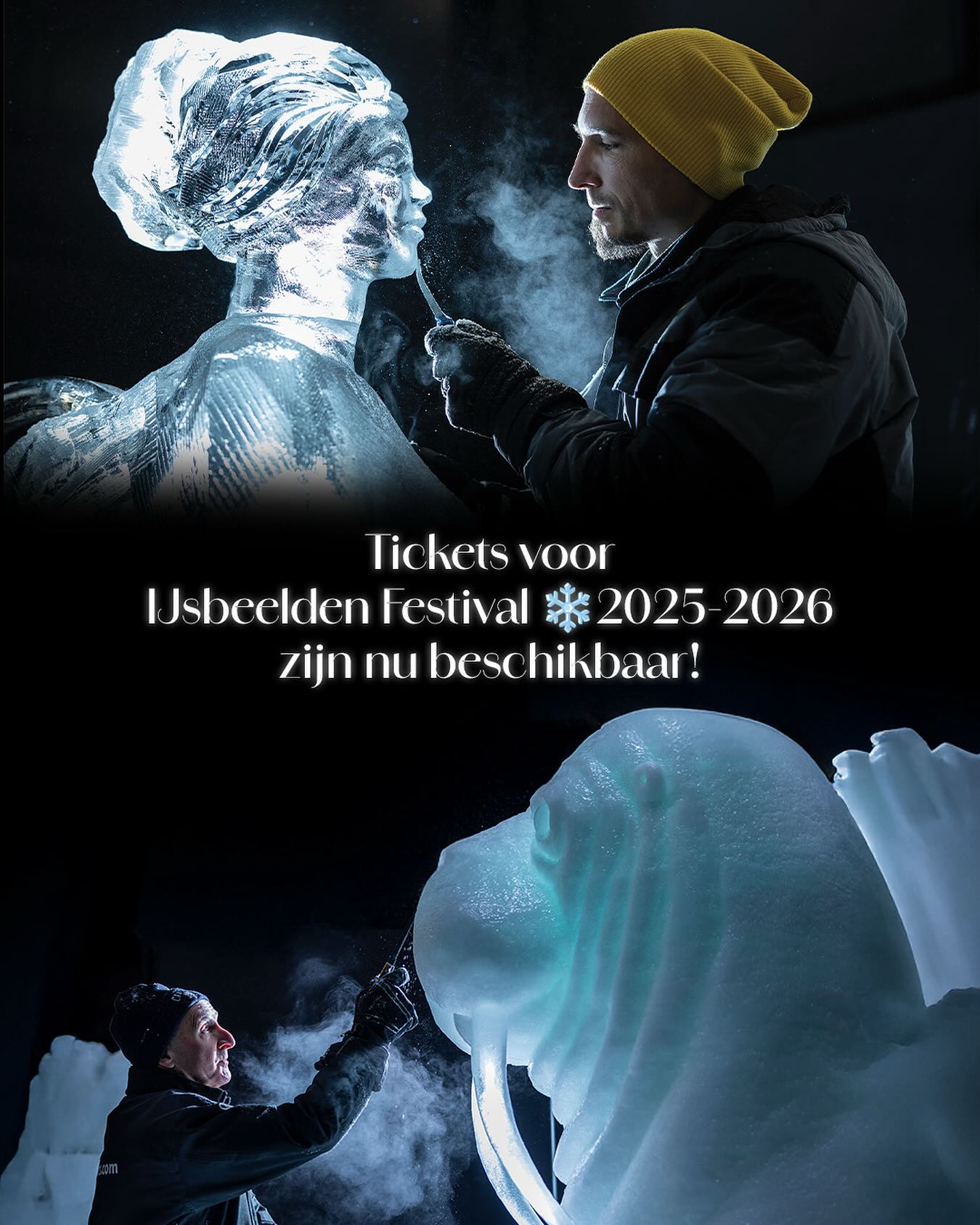 Die plek bestaat. Van 13 december 2025 t/m 8 maart 2026 opent het Nederlands IJsbeelden Festival opnieuw haar deuren in Biddinghuizen. 45 internationale topkunstenaars toveren ruim 300.000 kilo ijs en 275.000 kilo sneeuw om tot een adembenemende wereld die je maar één winter kunt beleven.