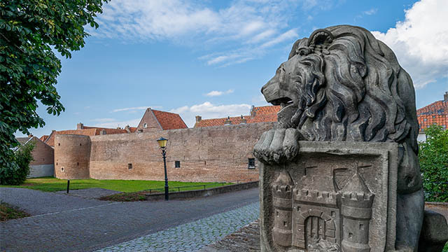 Bij de Goorpoort staan twee van de 22 leeuwen, afkomstig van de Westertoegang in Amsterdam. In 1909 werden de leeuwen hier weg gehaald en werd dit treinviaduct gesloopt.