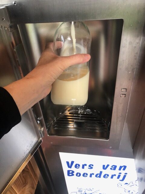 Er staat een picknicktafel waar je even kunt zitten. Als je een halve liter melk tapt, kun je het ter plekke opdrinken. Heerlijk!