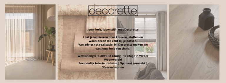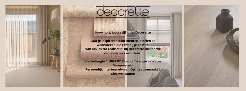Al jouw woonproducten onder één dak. Snuffel tussen het behang, vloeren en kleurstalen. Om over het assortiment stoffen nog maar te zwijgen. Bij Decorette word je ontzorgt, zij helpen je graag bij de realisatie van jouw woondroom. Kwaliteit én service, daarvoor ben je bij Decorette op de juiste plek.