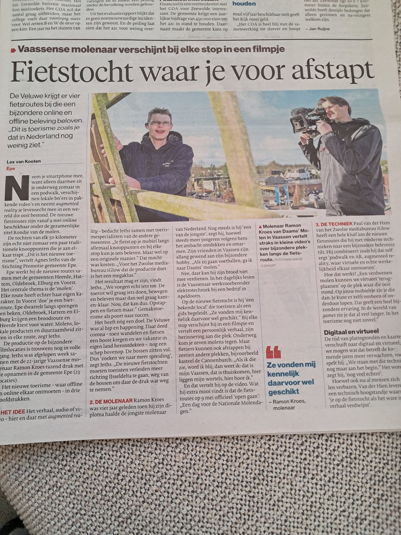Je lokale gids is molenaar Wim Timmerman van molen De Hoop in Oldebroek. Hij kent de mooiste plekjes uit het gebied. Tijdens deze fietstocht bezoek je 19 locaties, de totale afstand is 56 kilometer en je zou er zo’n 360 minuten in tijd voor kunnen reserveren. In Elburg fiets je langs onder andere de Stadsbierbrouwerij, een palingrokerij of Bakkerij Schuld.