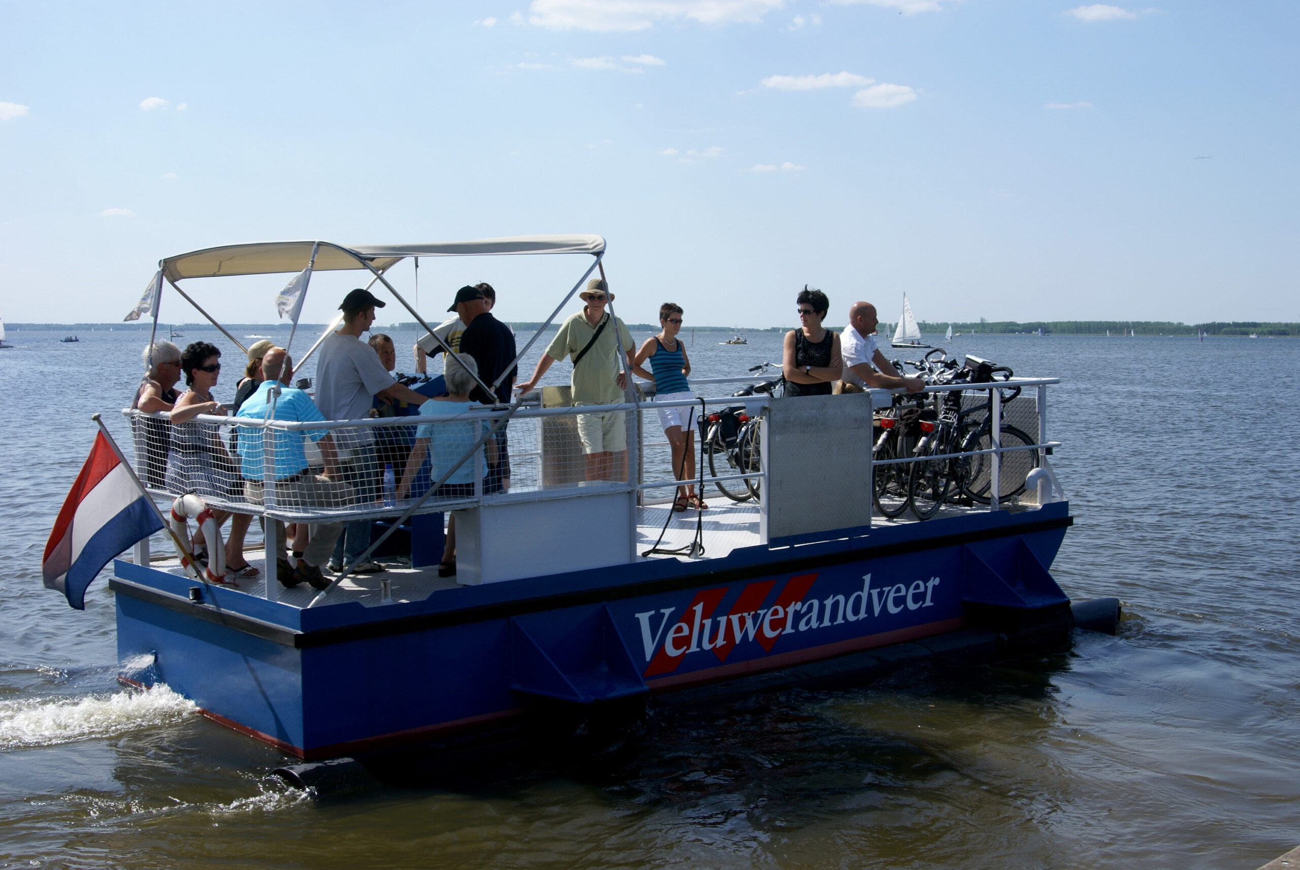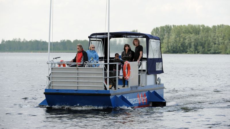 Een fietstocht om het hele Veluwemeer is soms wat te veel van het goede. Begrijpelijk, want veertig kilometer is een behoorlijke afstand. Daarom vaart vanaf half april tot half oktober tussen Nunspeet en Biddinghuizen het Veluwerandveer.