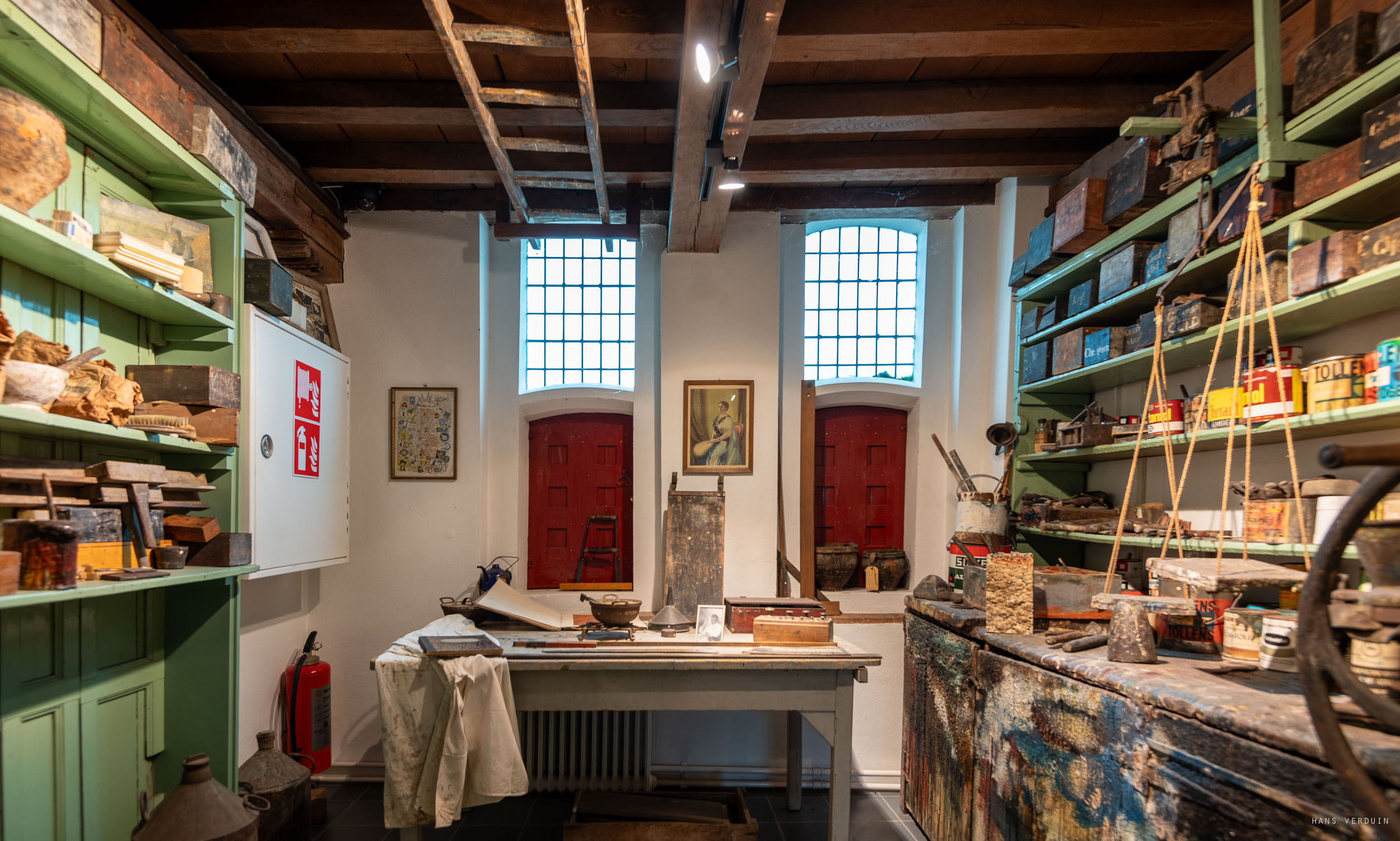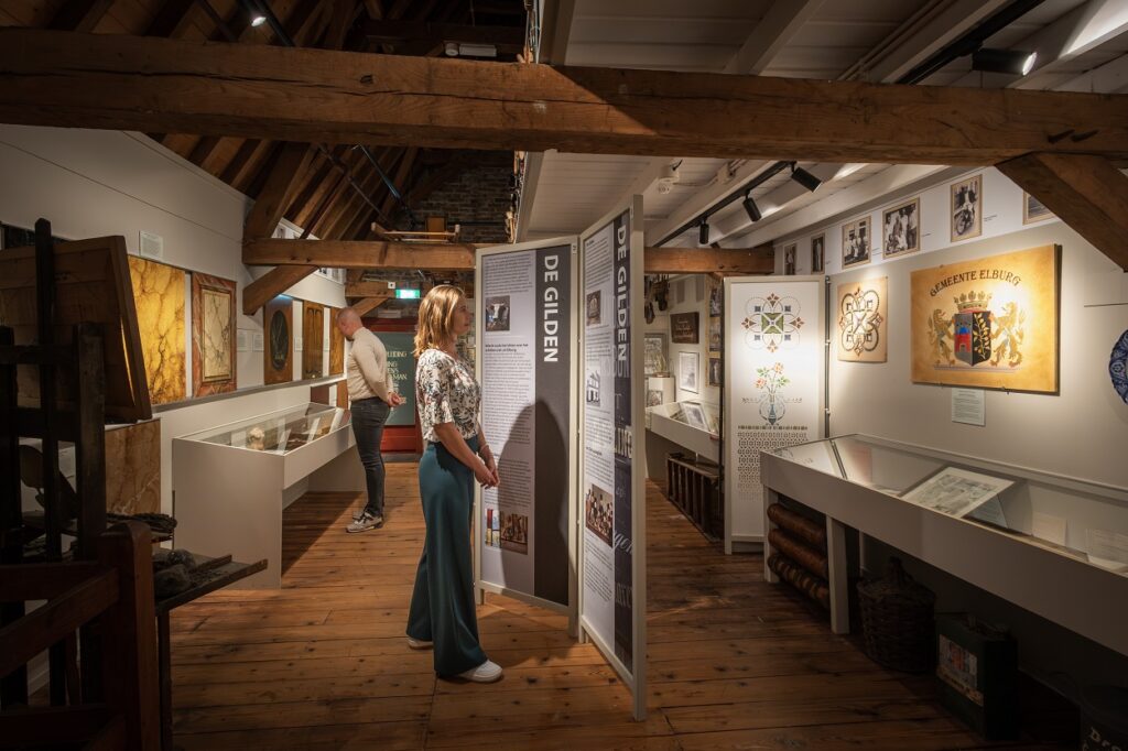 Op 31 maart 2023 is het Schildersmuseum officieel geopend. Op de zolder van Museum Elburg stelde Anton van Wezep in samenwerking met de oudheidkundige vereniging Arent thoe Boecop een prachtige collectie samen. Deze omvat diverse examenwerkstukken (marmer- en houtimitaties op panelen), schildersgereedschap, diploma’s en oorkondes maar ook reclamemateriaal uit vroeger tijden. Intrigerende stroken van kleurige schijfjes blijken bij nader inzien te bestaan uit talloze ballpoints van allerlei schildersbedrijven. Foto’s en informatieve teksten geven een indruk hoe de schilders vroeger te werk gingen. En na een bezoek aan dit museum besef je pas goed hoeveel disciplines er schuilgaan onder de paraplu van het schildersambacht.