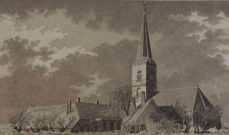 De kerk werd na zware stormschade en een brand door blikseminslag in 1825 geheel afgebroken. De plek waar de kerk stond is gemarkeerd met stenen op de plaats van de vroegere funderingen. Deze worden nu omringt door een mooie kring van lindebomen. Voor de vogelaar is het genieten van de, soms bijzondere, watervogels vanuit een mooie vogelhut.