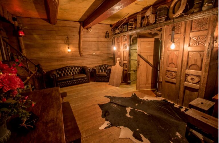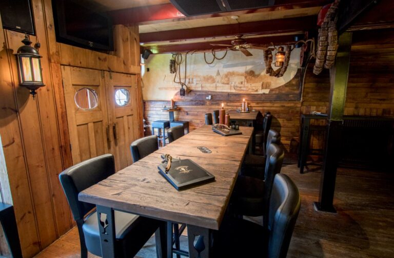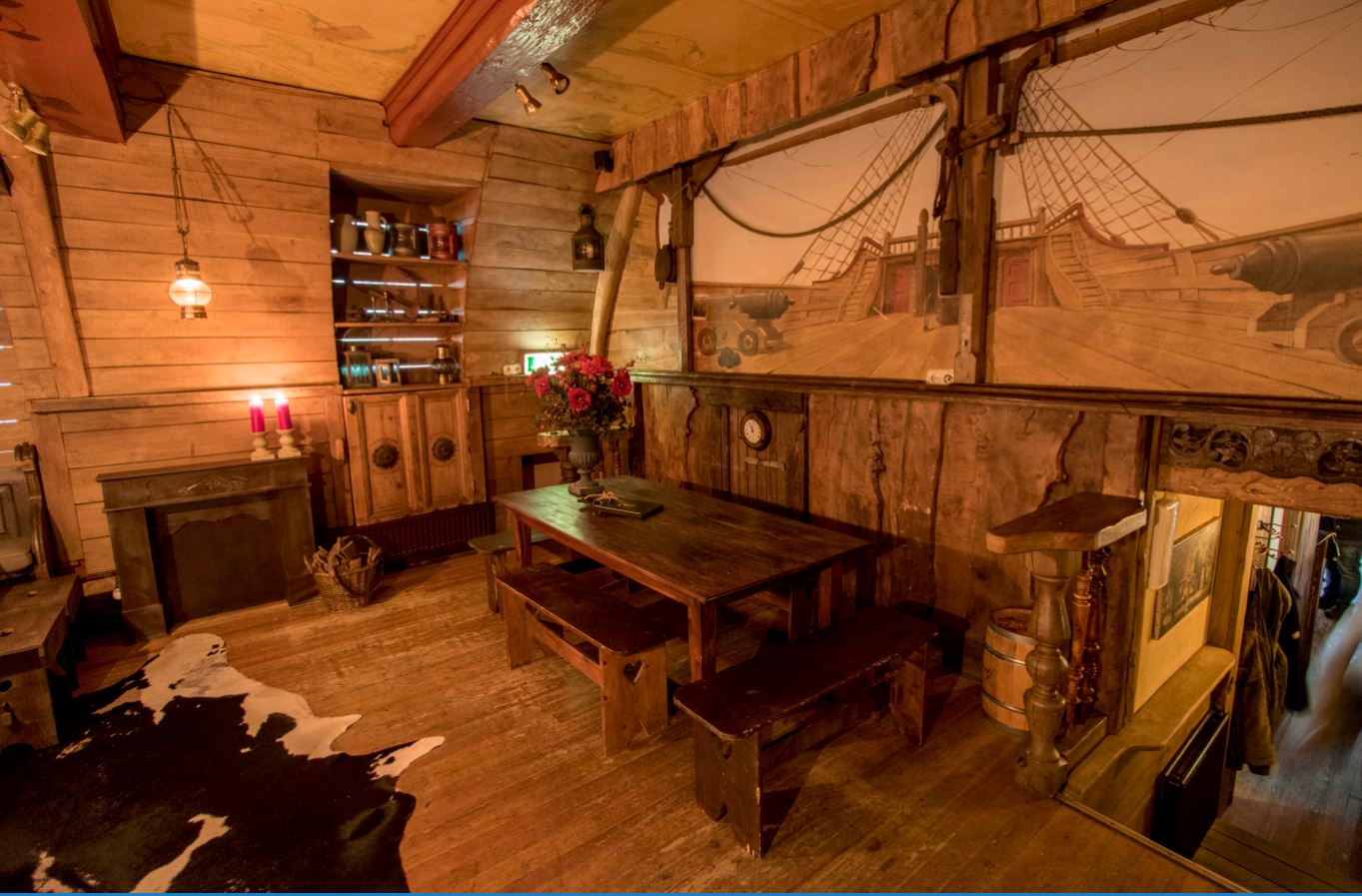 Bij binnenkomst stap je aan boord van een nagebouwd handelsschip van de Hanzestad Elburg, het pand dateert al van 1765. Het is nu authentiek in een modern jasje. Schilderijen geven vanuit de kajuit uitzicht op de punt van de boot. Kleine, ronde raampjes creëren een lichtinval die je normaal aan boord ook zou ervaren.