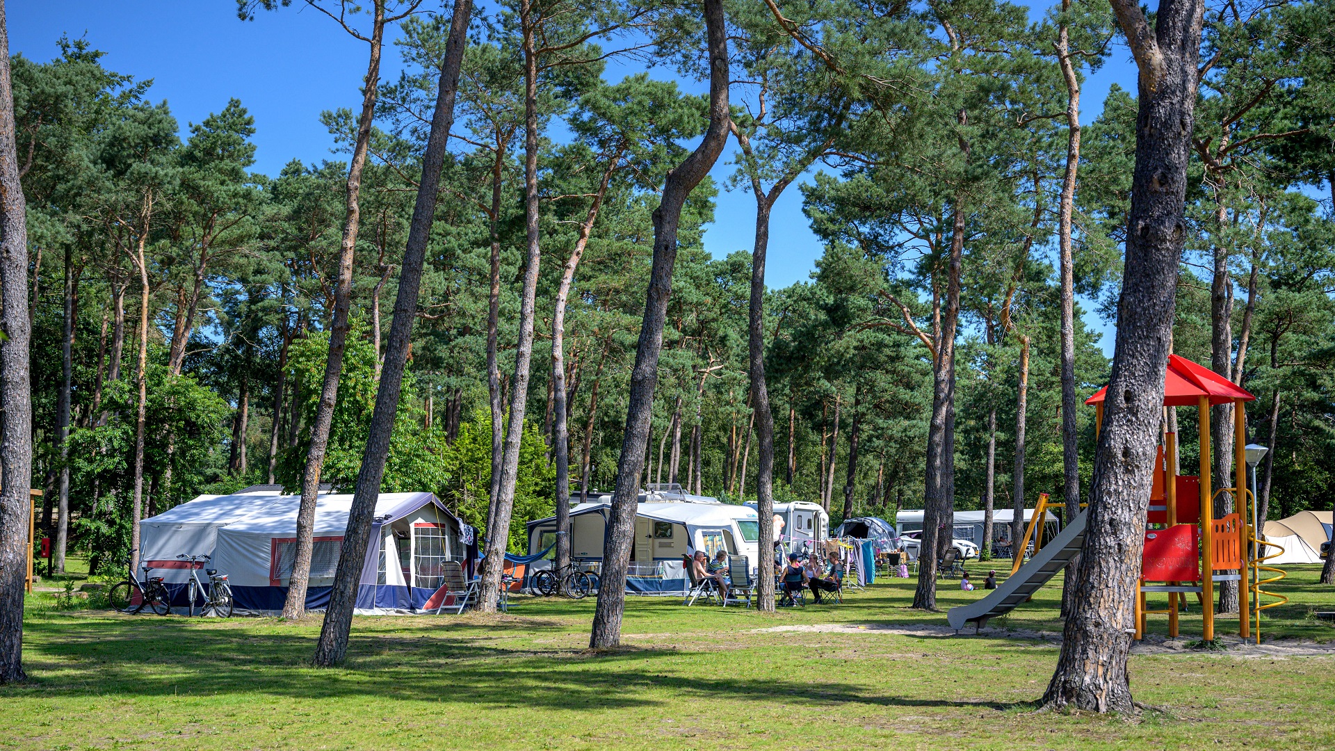 Camping De Scheepsbel heeft 2 verschillende kampeervelden met ruime plaatsen van circa 80 m², elektra, douchen en water is inclusief.