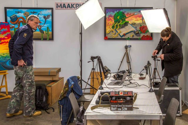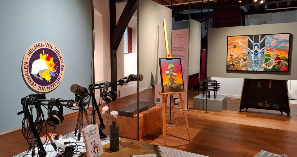 In de expositieruimte worden van 12:00 tot 16:00 podcasts opgenomen met veteranen en ook jullie als bezoekers. "Schuif aan bij de podcast tafel met Peter van Asselt en laat je boodschap achter over de expositie of vertel je verhaal in een korte podcast sessie. De podcasts worden gepubliceerd op het youtube kanaal van Helmen Vol Verhalen."